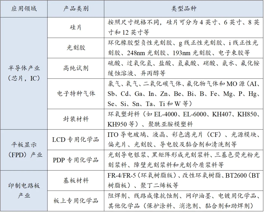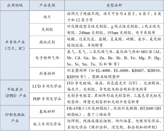 (一)电子化学品细分门类多,专业跨度大