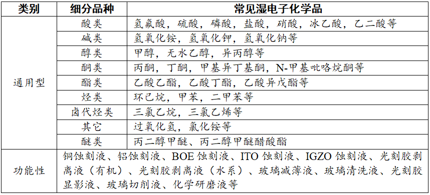 表2 典型湿电子化学品主要类别及产品