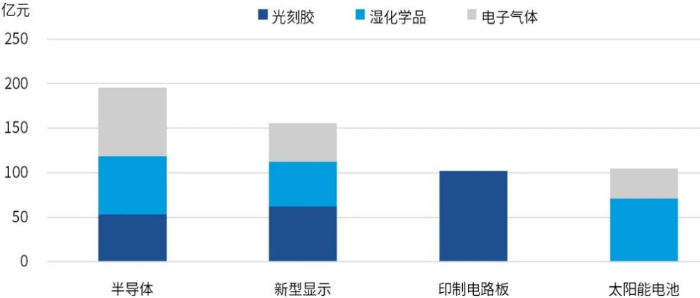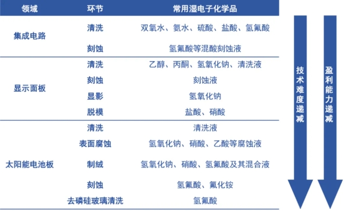 图4 不同下游领域使用的湿电子化学品和工艺环节