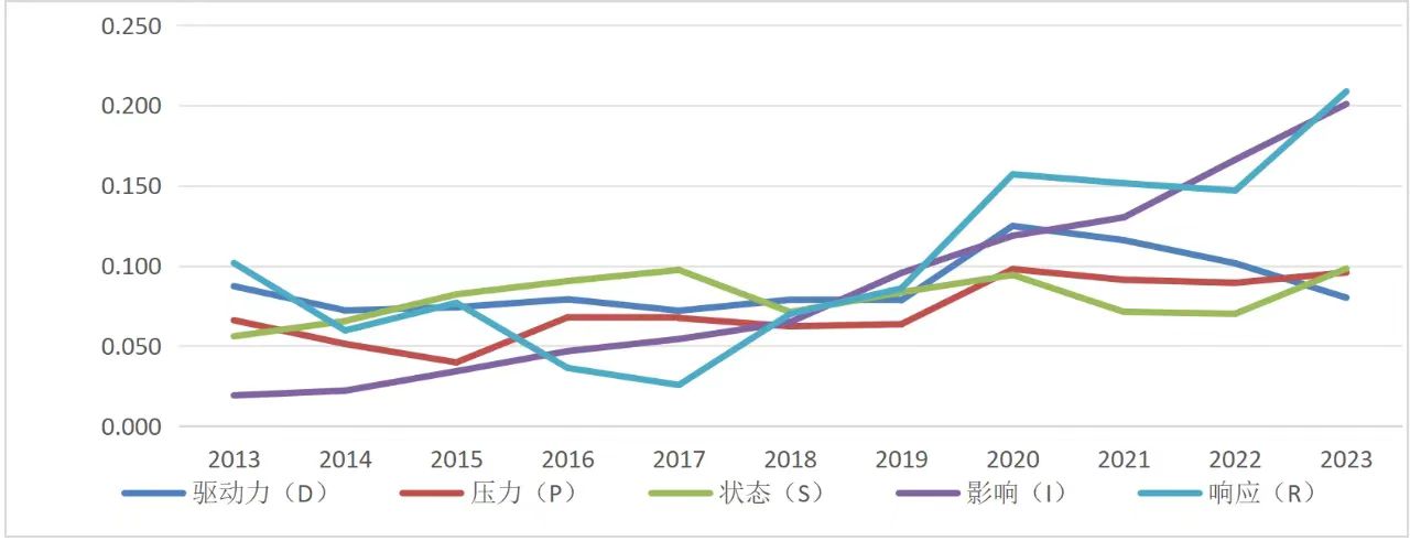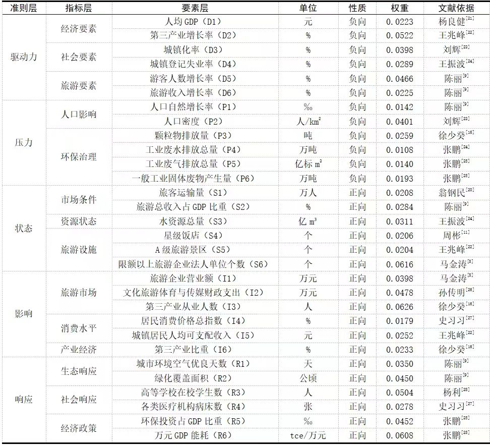 基于DPSIR模型的 九江市旅游生态安全评价研究 吕辰 冯程 李晓健 摘要:本研究基于 2013-2023年九江市相关数据的系统梳理与统计分析,采用DPSIR模型构建了包含驱动力、压力、状态、影响和响应五个子系统的指标体系。研究过程中,采用系统分析方法探究旅游生态系统内部各指标间的因果关系,运用熵权法进行权重计算,并通过TOPSIS法对各子系统进行评价与分析。研究结果表明,九江市旅游生态安全整体水平呈现稳步提升态势,但仍面临一般工业固体废物产生量等压力因素的制约。据此,本研究从生态环境治理与保护、推动绿色旅游发展、优化旅游设施与服务等方面提出科学建议,为九江市旅游生态安全的协调发展提供了理论依据,同时也为同类区域的旅游生态安全研究提供了有益参考。 关键词:旅游生态安全;DPSIR模型;熵权法;TOPSIS法;九江市 随着旅游业的蓬勃发展,其对生态环境的影响日益凸显。生态环境质量与旅游经济相互关联、相互促进发展:一方面,良好的生态环境是旅游业发展的生命线,能够为旅游经济注入持续动力,同时旅游收益又能反哺生态环境的改善;另一方面,若过度追求经济效益,将不可避免地损害生态环境,最终制约旅游产业的可持续发展。因此,将生态环境保护深度融入旅游产业发展,推进旅游生态安全建设,不仅具有重要的现实意义,更对旅游业长远发展具有深远价值。 生态环境状况的优劣对旅游效果的影响至关重要,游客的满意度与旅游景区的环境质量密切相关,直接影响着旅游业的可持续发展。旅游生态安全评价旨在分析旅游活动对生态环境的影响,探索实现旅游业可持续发展的路径。近年来,国内外学者已经在旅游生态安全评价研究方面,取得了一定的进展,通常需要创建旅游地生态评价的指标体系[1],相关研究主要从研究内容[2-3]、研究对象[4-7]、研究区域[8-11]等角度出发。常用的研究方法有PSR模型[12]、灰色关联投影法[13]、PSR-SEE模型[14]、DPSIR模型[15]、模糊物元模型[16]等。DPSIR是基于因果关系组织信息及相关指数的模型,全称为“驱动力-压力-状态-影响-响应”模型,近年来广泛应用于生态安全评价等领域,由于以往的研究在旅游生态安全评价方面尚未形成统一的研究方法和体系,具有一定局限性,而通过DPSIR模型构建驱动力、压力、状态、影响、响应五个子系统的体系指标,可以在多个指标相互影响的情况下,系统地分析各指标对旅游生态安全的影响程度,进而揭示其因果联系,在系统性和综合性方面具有较大优势,因此决定采用这种模型。 综上所述,本文将江西省九江市作为研究区域,通过DPSIR模型构建旅游生态安全评价指标体系,运用熵权法定量分析各指标的权重,结合TOPSIS法对九江市旅游生态安全进行实证分析,从旅游生态和谐与可持续性发展的角度,为九江市旅游生态安全发展提供建议。 一、研究区域概况与数据来源 (一)研究区域概况 九江市,江西省辖地级市,地处江西省北部,赣、鄂、湘、皖四省交界处,介于东经113°56'~116°54'、北纬28°41'~30°05'之间,属亚热带季风气候,四季分明,总面积19084.61平方千米。截至2023年6月,九江市辖3个市辖区、7个县,代管3个县级市。九江市作为中国著名的风景旅游胜地,其旅游业的繁荣对当地经济发展起到了重要的推动作用。然而,九江市生态环境正承受着旅游人数持续增长和旅游活动频繁带来的巨大负荷与压力。一方面,九江是中国优秀旅游城市、中国最宜居城市、国家历史文化名城、国家园林城市、国家森林城市、最具国际影响力旅游城市[17];另一方面,九江石化地处长江经济带,自1980年起发展成为江西省唯一大型石油化工企业,2022年九江市实现工业税收260.6亿元[18],其中中国石化九江分公司就上缴税费130亿元[19]。石化工业尽管在经济方面给当地带来了很大发展,但在环保方面也曾经存在一定问题。不合理的旅游开发、环境污染、资源过度消耗等问题叠加起来,对九江市旅游业的可持续发展构成了威胁。 (二)数据来源 通过梳理《九江市国民经济和社会发展统计公报》《九江市统计年鉴》《九江市生态环境统计年报》《江西省统计年鉴》以及九江市人民政府网站相关数据,收集九江市2013年至2023年有关旅游产业、生态环保、宏观经济等数据(个别数据缺少,使用插值法计列),来测评九江市的旅游生态安全水平。 二、评价指标体系建立 DPSIR模型最早由欧洲环境署(European Environment Agency, EEA)提出[20],用于评估环境系统的状况、压力、影响以及社会和经济的响应。近年来,DPSIR模型被广泛应用于旅游、生态、资源管理等领域的研究中,成为评估旅游生态安全、制定旅游发展策略的重要工具。该模型包括五个核心要素:驱动力(Driving forces)、压力(Pressures)、状态(State)、影响(Impacts)和响应(Responses)。根据以往的研究以及九江市的特点构建的旅游生态安全评价DPSIR模型如图1所示。 图1 旅游生态安全评价DPSIR模型示意图 (一)指标归纳和筛选 地区旅游的发展是一个错综复杂的综合体系,其动力源自自然资源、社会结构、产业经济等多个维度的深度融合与交互作用。因此,在评估九江市旅游生态安全时,所采用的评价指标自然而然地跨越了多个领域与学科边界,以确保能够全面而深入地审视并量化这一复合系统内的各种关键要素及其相互关系。因此在DPSIR模型的基础上,分别从社会要素、旅游要素、人口