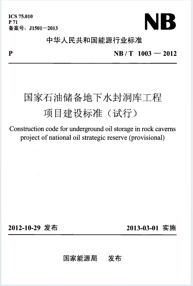 本标准适用于国家石油储备地下水封洞库项目新建工程。