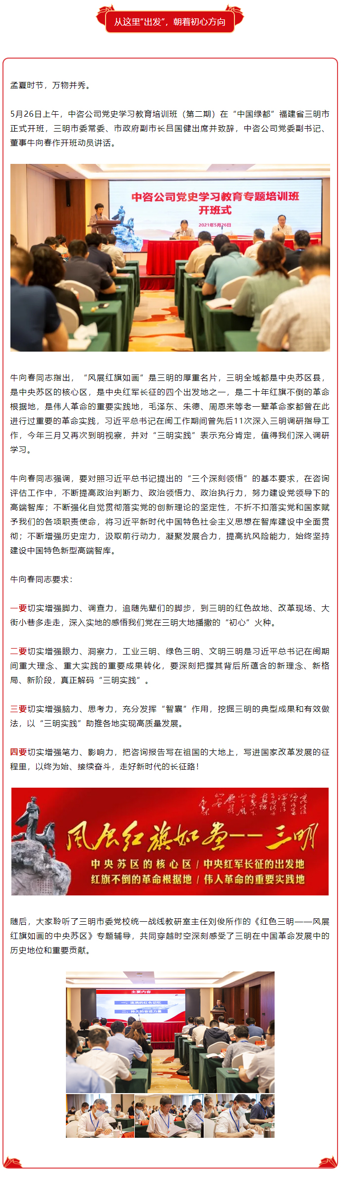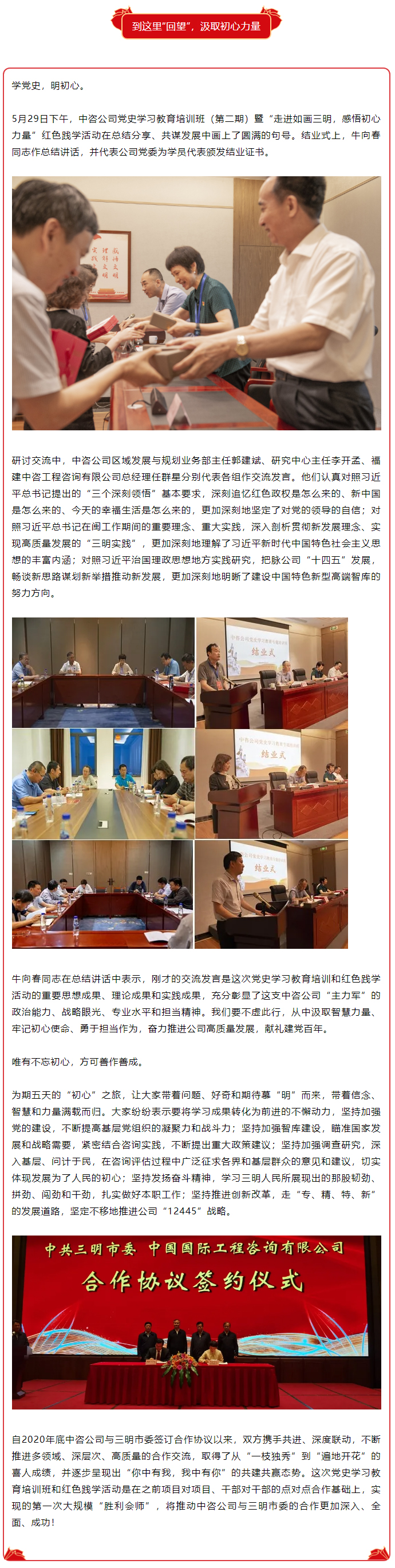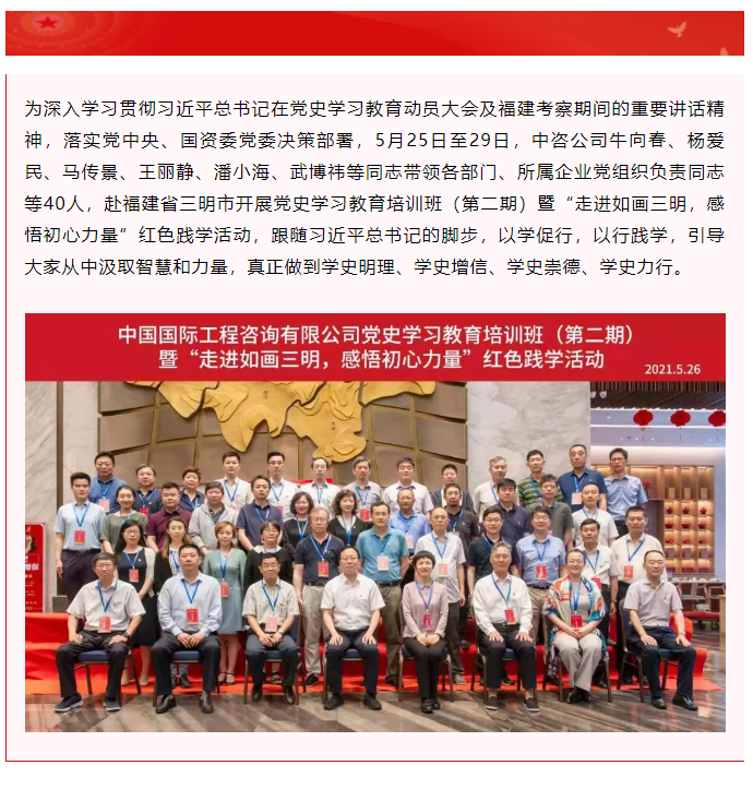 走进如画三明,感悟初心力量——中咨公司举办党史学习教育培训班(第二期)暨红色践学活动