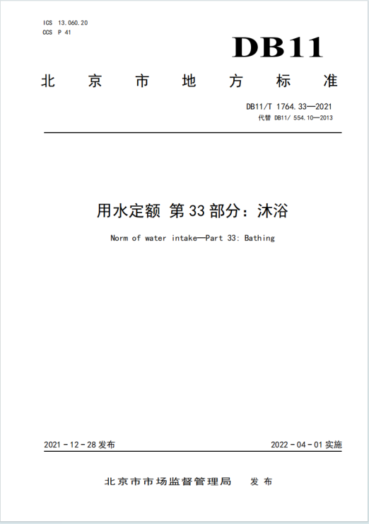 用水定额 第33部分:沐浴