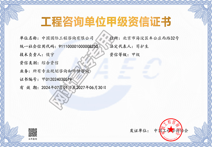 工程咨询单位甲级资信证书(综合资信)