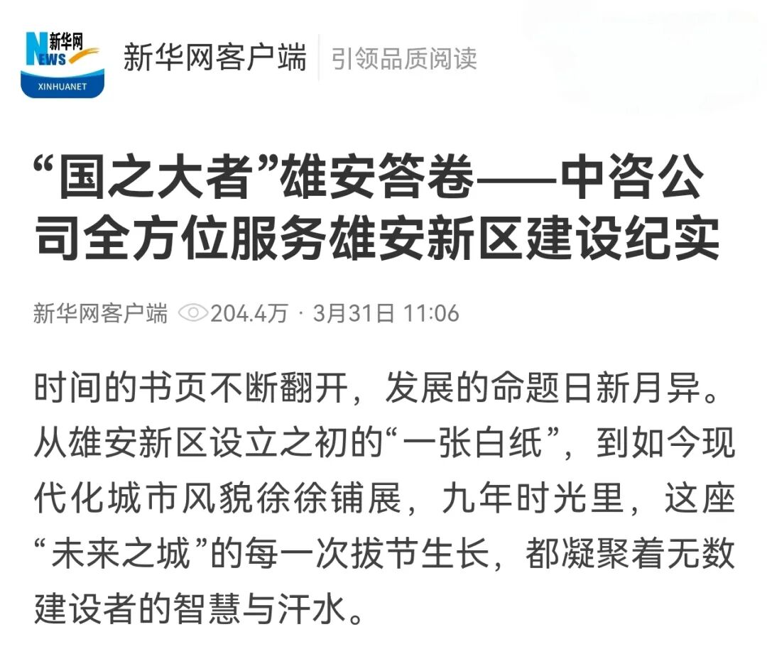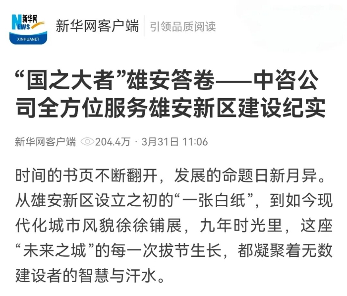 新华网丨“国之大者”雄安答卷——中咨公司全方位服务雄安新区建设纪实